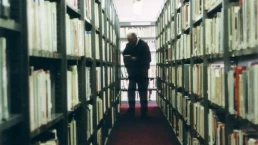 Un rayonnage de bibliothèque, un exemplaire de The Grasshopper Lies Heavy, roman-dans-le-roman et élément déclencheur de fiction dans The Man in the High Castle, de Philip K. Dick. (Hawthorne Abendsen ?)