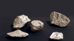 Une suspension composée d'un assemblage de chutes de matériaux, éclairé par une lampe de bureau. (voir Nora)