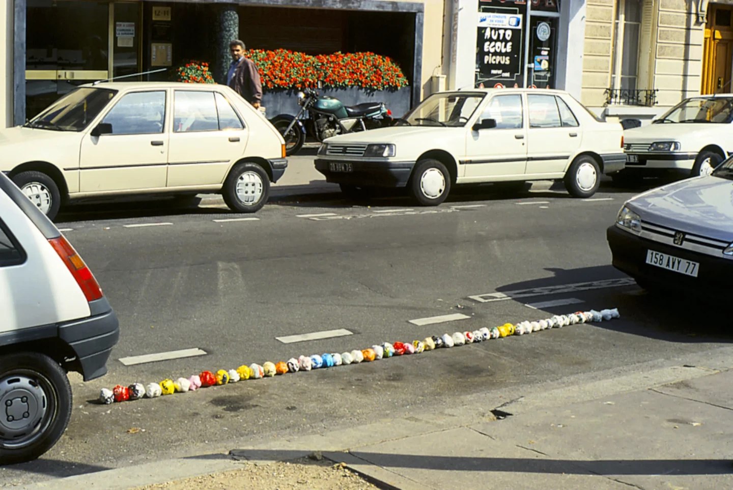 Les actions-peu sont des interventions anonymes et éphémères réalisées dans l’espace public, le plus souvent avec des éléments trouvés sur place.