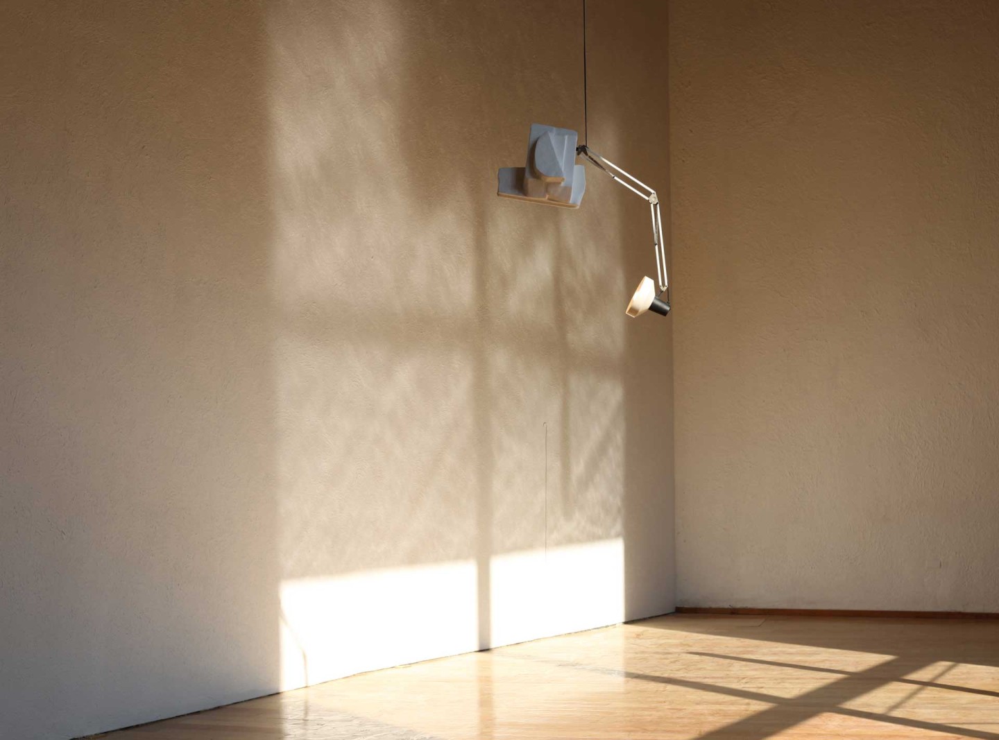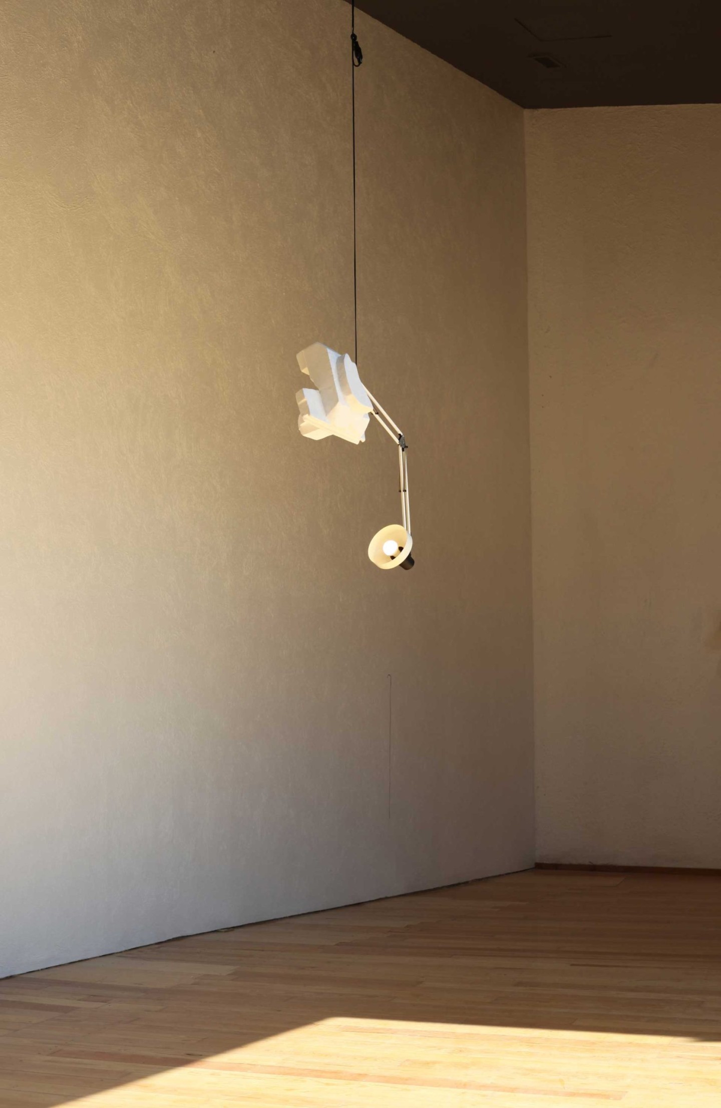 Workshop scrap, desk lamp, acrylic paint, varnish